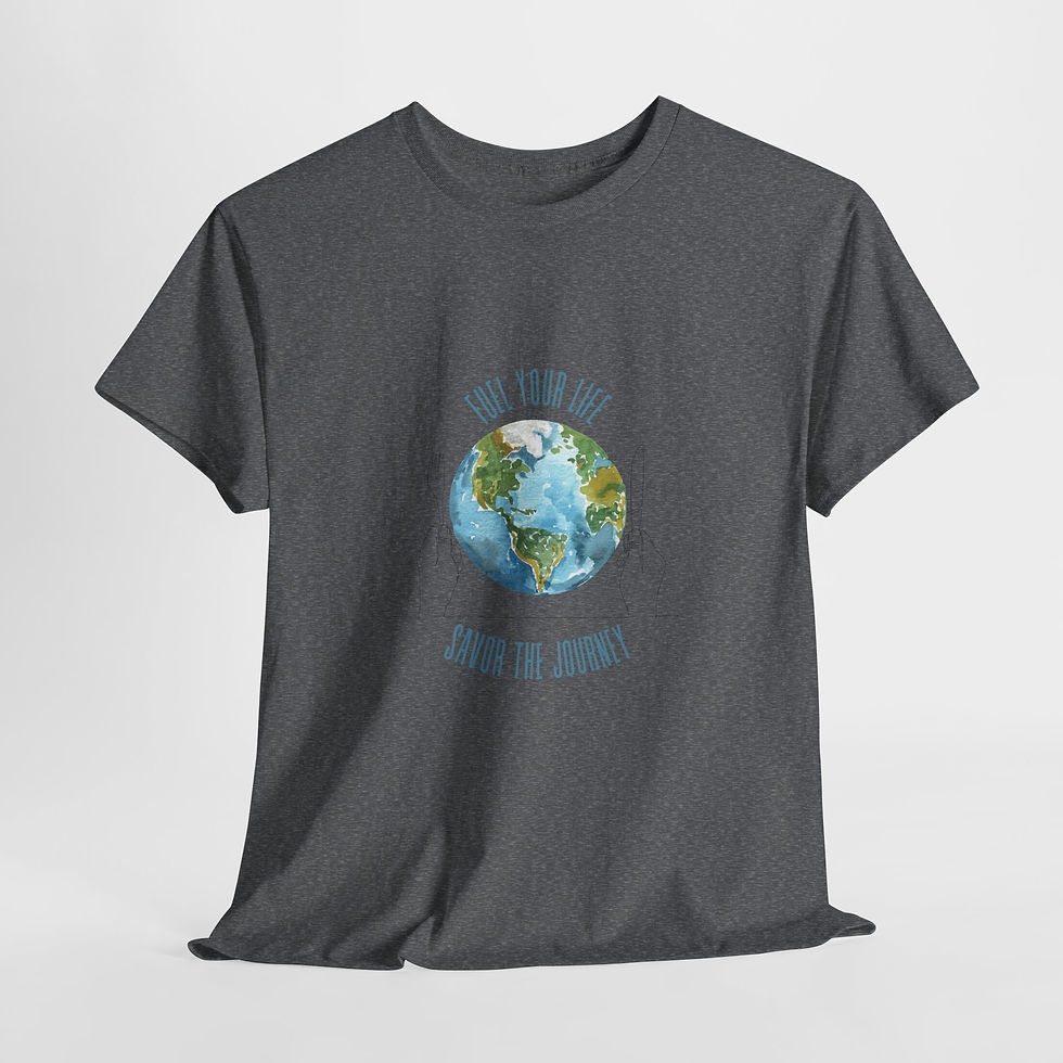 Our travel-inspired T-shirts combine style, comfort, and adventure. Featuring uplifting designs and slogans like "Fuel Your Life Savor the Journey" these breathable cotton shirts are perfect for every traveler. Available in modern colors like greys, blacks, and blues, they’re great for your next trip—or just dreaming of one.
